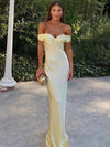 Gorgeous Off Shoulder Satin Long Evening Prom Dresses, Mermaid Prom Dr